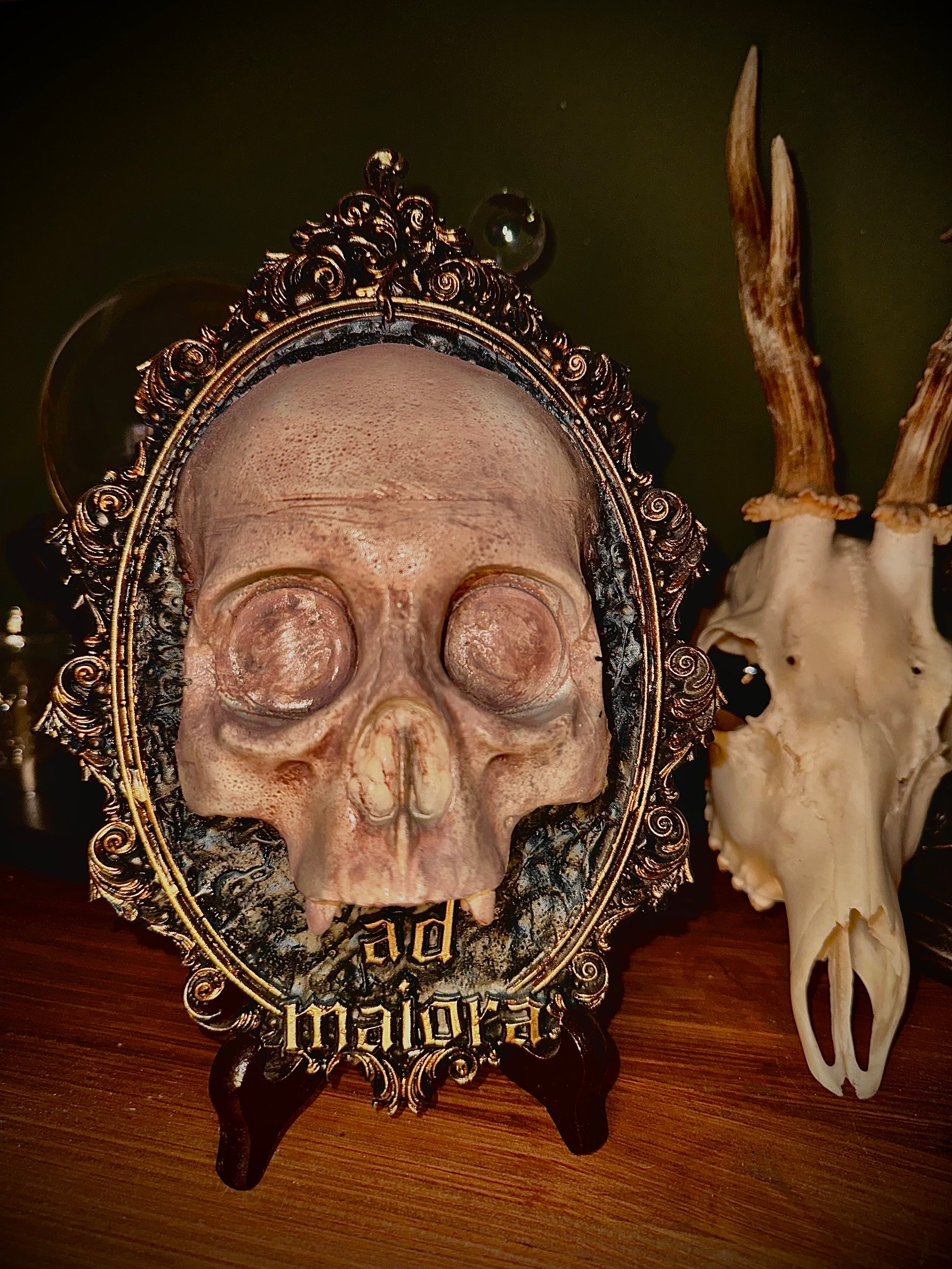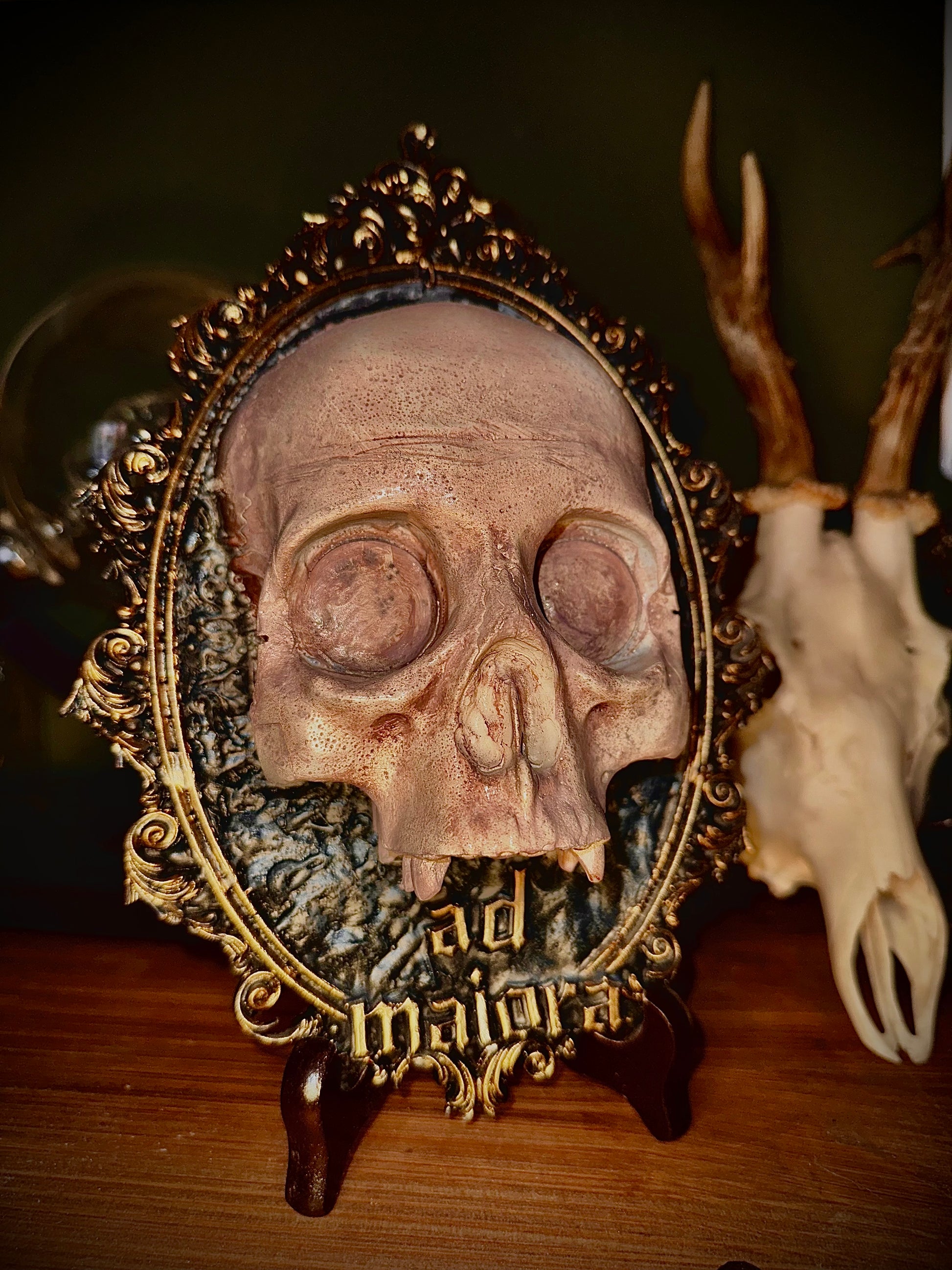 CARPE DIEM - Cornice barocca con teschio in resina