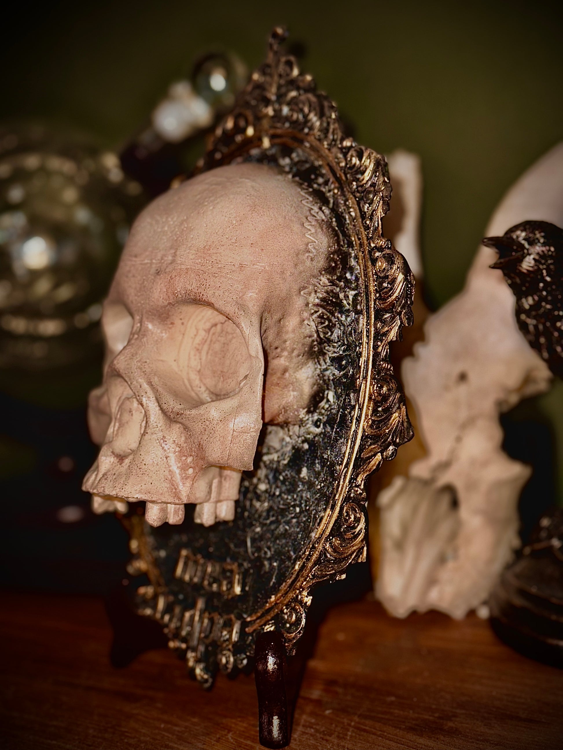 MEA CULPA - Cornice barocca con teschio in resina